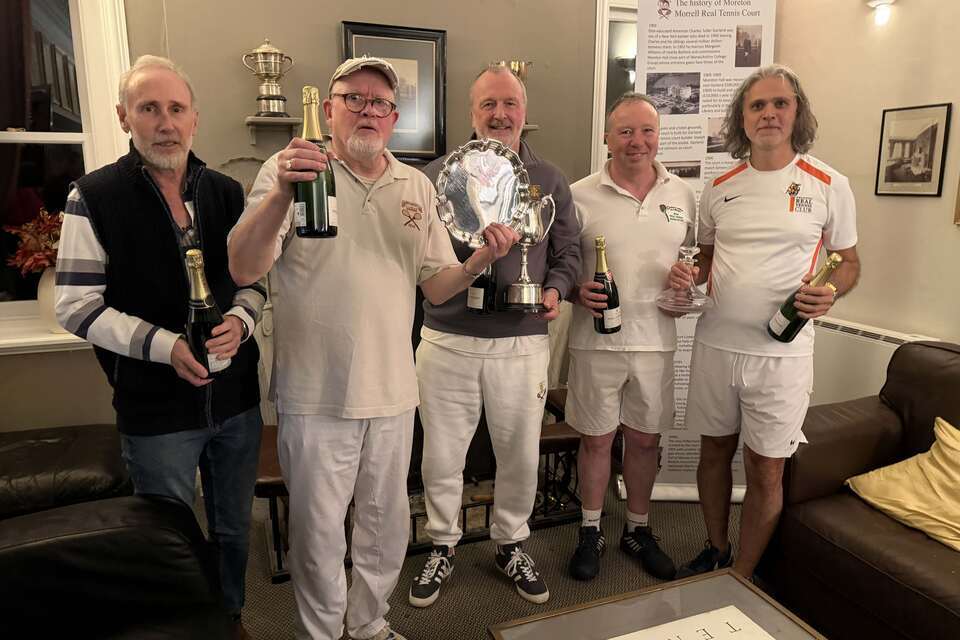 Image: Moreton Morrell Tennis Court Club In the group stage, the results were as follows: Danny Dawson v Jon Speirs (Wales): Jon lived up to his nickname and used force to overcome a slightly rusty Danny 6–2. DD v David Harris (MMTCC): David raced to a 5–2 lead, but Danny composed himself to come back to 5–5, then narrowly lost out in a tight final game, 6–5. DD v Simon Hobson (MMTCC): Another tight match going back and forth, but home court advantage played out in another 6–5 thriller. Doubles saw Roy Rogers and Richard Ramjane play together. Firstly, against Wales in the form of Mike Llewelyn Jones and Tim Harper, winning 6–3. Then against two MMTCC teams, winning against Charles Whitworth and Tony Branfield 6–3, and against a youngster, Harry Tippets, with partner Richard Cherry 6–2. Topping the group they went on to Sunday's proceedings: